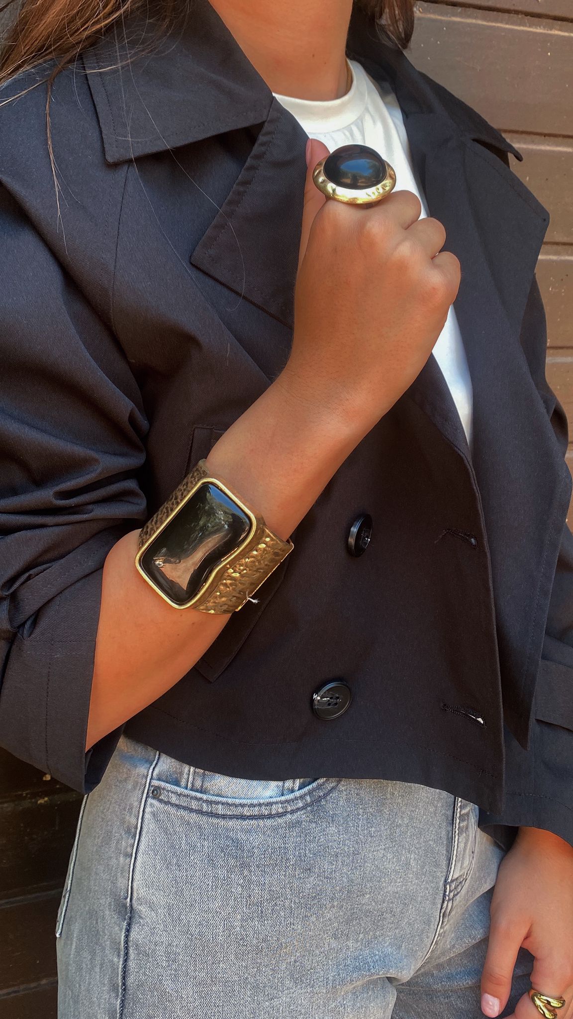Chaqueta Trench de corte over size, con solapa y botones en la parte delantera.