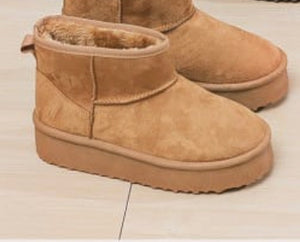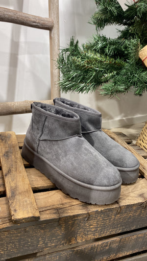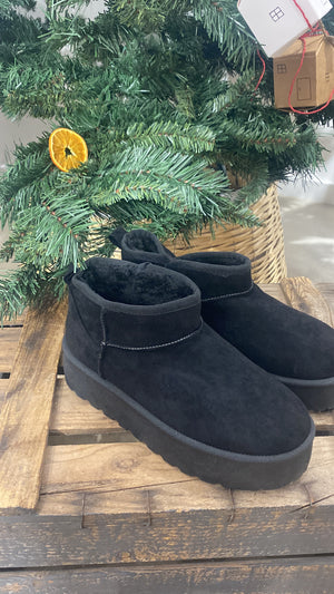 Botas cortas de efecto serraje y forradas de pelito en su interior.