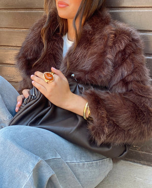 Chaqueta de pelo estilo oversize con bolsillos laterales y forro interior, de gran calidad y perfecta para otoño e invierno. Disponible en tallas S-M (hasta 42) y L-XL (hasta 46).