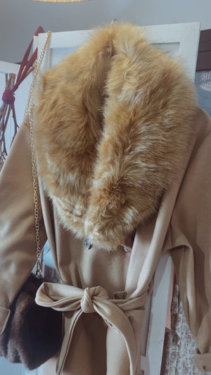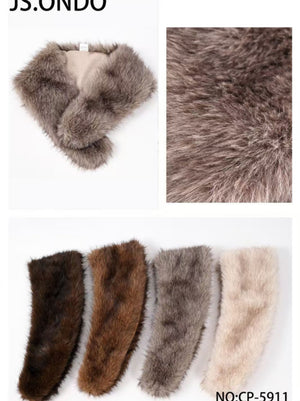 Cuello de pelo sintético de color tostado , forrado todo en su interior y con cierre de pinza para su cierre...