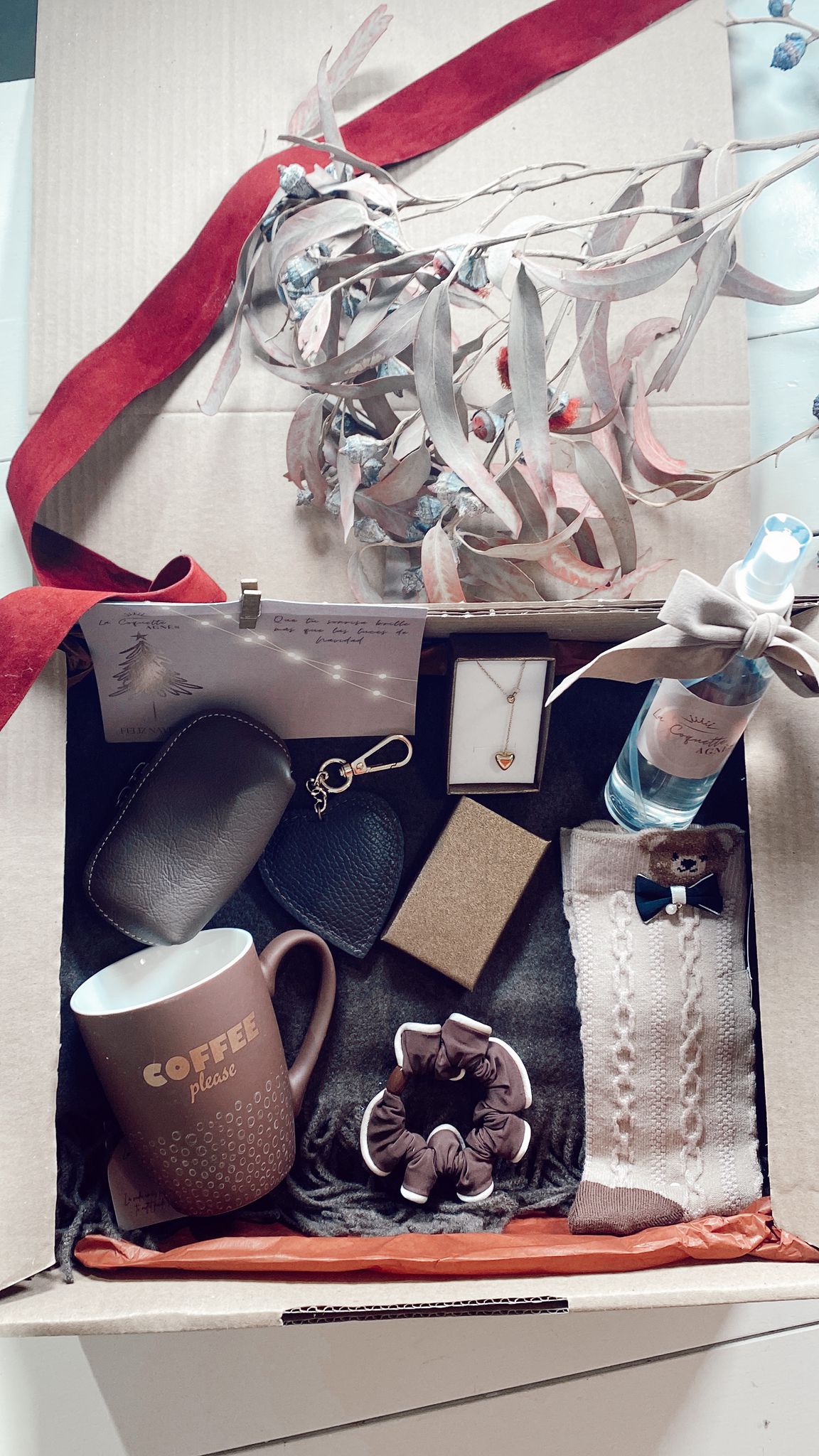 Cada caja de Navidad o Xmas Box está preparada con cariño, pensando en la ilusión de ese momento en el que un regalo se abre y el corazón se acelera. Dentro encontrarás artículos seleccionados con dedicación… y con un detalle encantador: el color de cada pieza es una sorpresa.