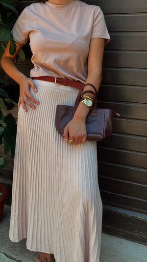 Falda de  punto larga  de tablillas con goma en la cintura.