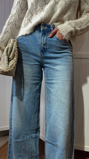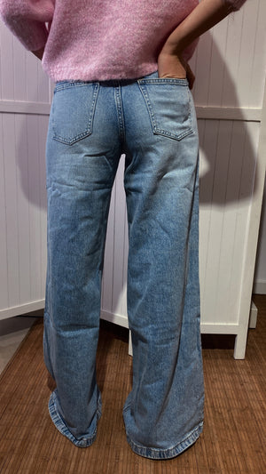 Pantalón de corte wide leg , cintura alta y camal de patrón Palazzo. Un vaquero con un patrón muy favorecedor y...