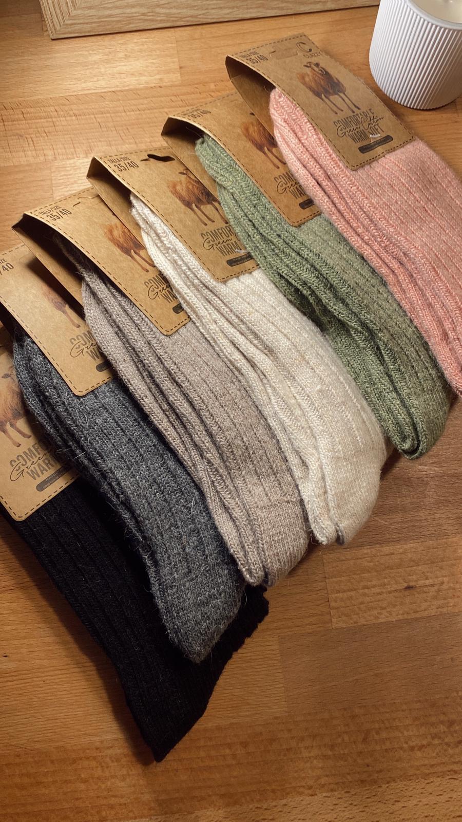 Calcetín de tejido efecto canalé, de angora y lana, muy suave y calentito, de buena calidad, material natural, no te puedes quedar sin ellos.