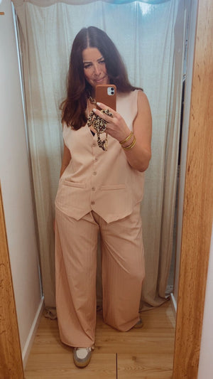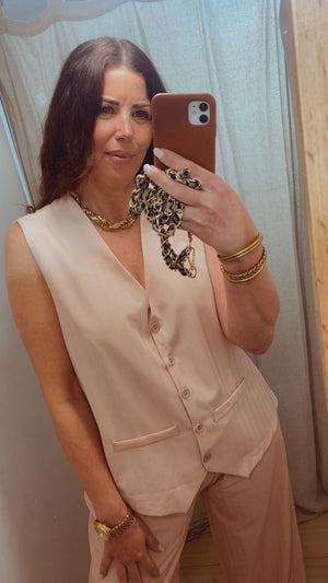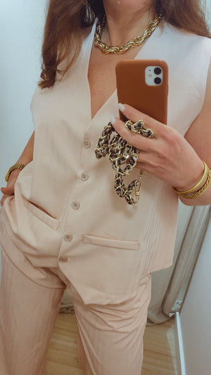 - Chaleco manga sisa, escote en pico doble bolsillo decorativo y abotonado en la parte delantera.