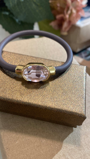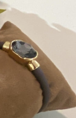 Conjunto de anillo y pulsera de caucho regulable ( se puede abrir y adaptar a la medida que sea necesaria ) y cristal .