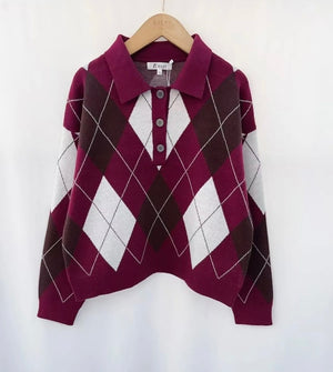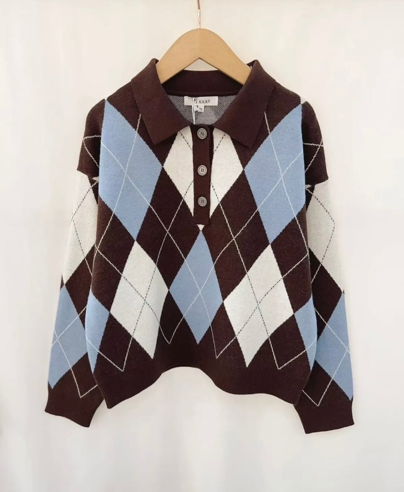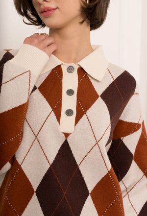 Jersey de rombos de tejido muy suave con detalle de cuello y botones en la parte delantera .