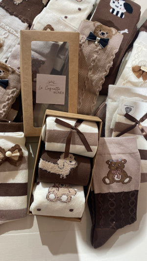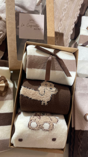 Pack de tres pares de calcetines de angora de motivo de osito .