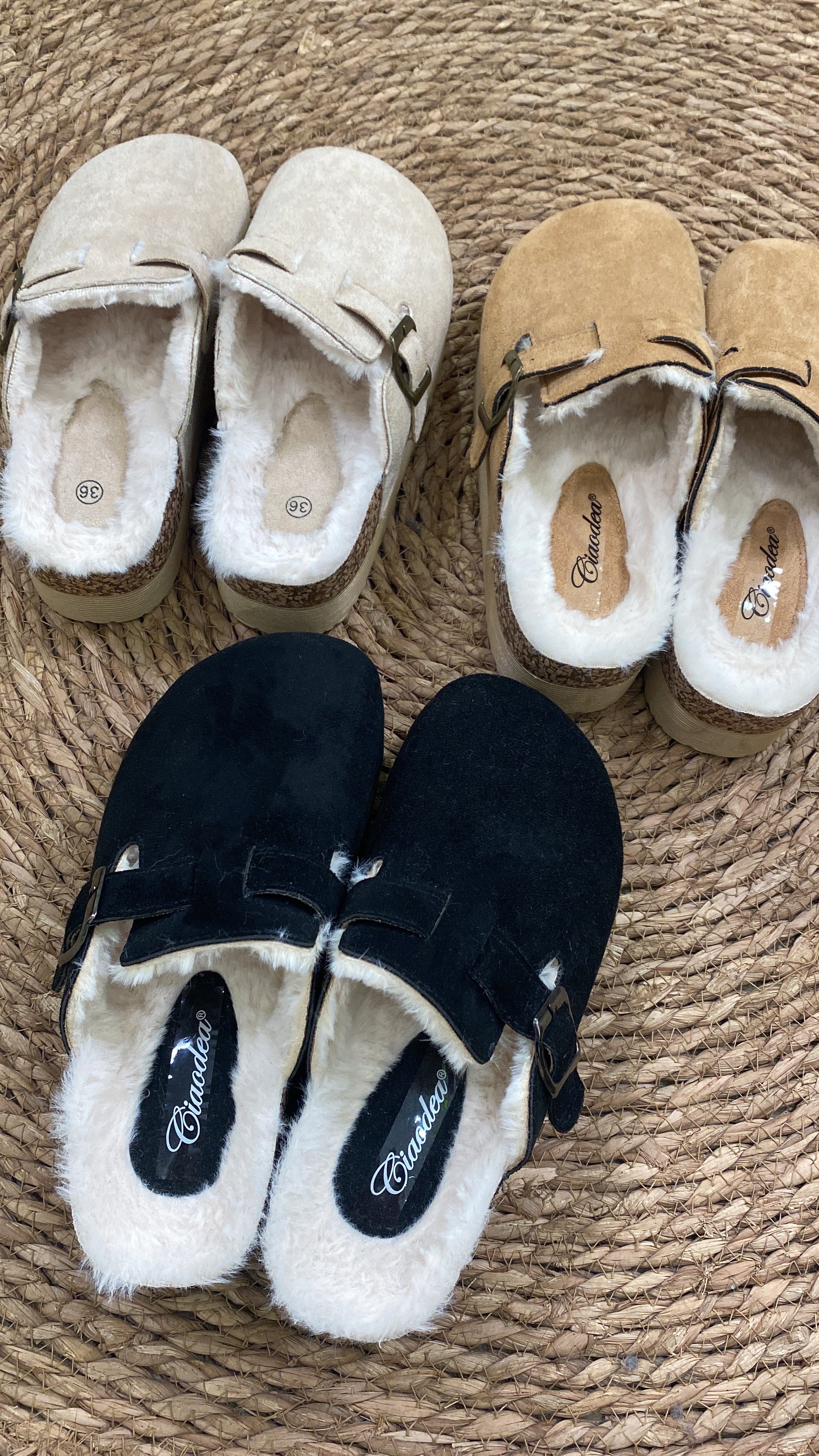 Zueco pelito Zueco de efecto serraje , con hebilla regulable y forrado todo su interior de pelito. Un calzado muy cómodo...